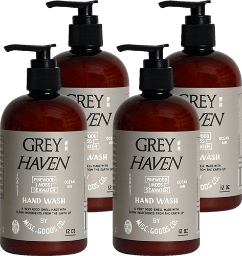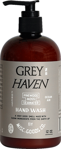 Salt on your skin. Pine in the air. Herbs crushed underfoot. A breeze off the sea brings citrus and white wine through the forest. Sharp, fresh, and alive. Greyhaven is a coastal blend of land and water — a hand soap that wakes you up and settles you down all at once.